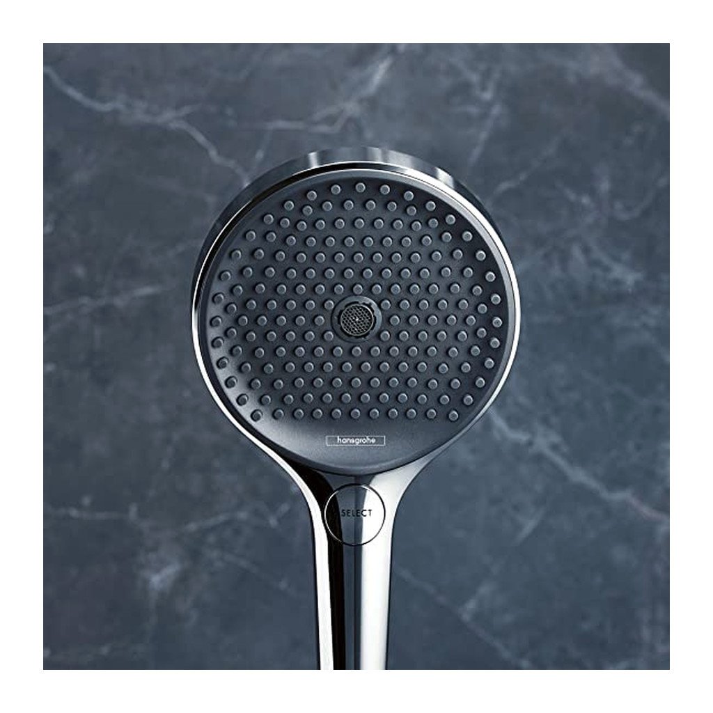 Cu o singură apăsare, puteți schimba tipul de jet sau tipul de duș. Cu un buton Selecta bateriile pot fi operate foarte simplu. Prin apăsarea butonului, apa nu este doar pornită și oprită, dar este și posibilă comutarea între diferite tipuri de duze pentru dușurile de mână sau deasupra capului. Cu termostatul, datorită acestei tehnologii integrate, este posibil să porniți și să opriți curgerea apei cu precizie deplină și să alegeți diferite dușuri. Dacă este necesar, puteți controla bateria fără a folosi mâinile, deoarece butonul poate fi comutat intuitiv cu mâna sau cu cotul. Buton Selectați Hansgrohe garantează simplitate în fiecare zi și este ideal pentru toți cei care apreciază o experiență confortabilă și plăcută la duș.