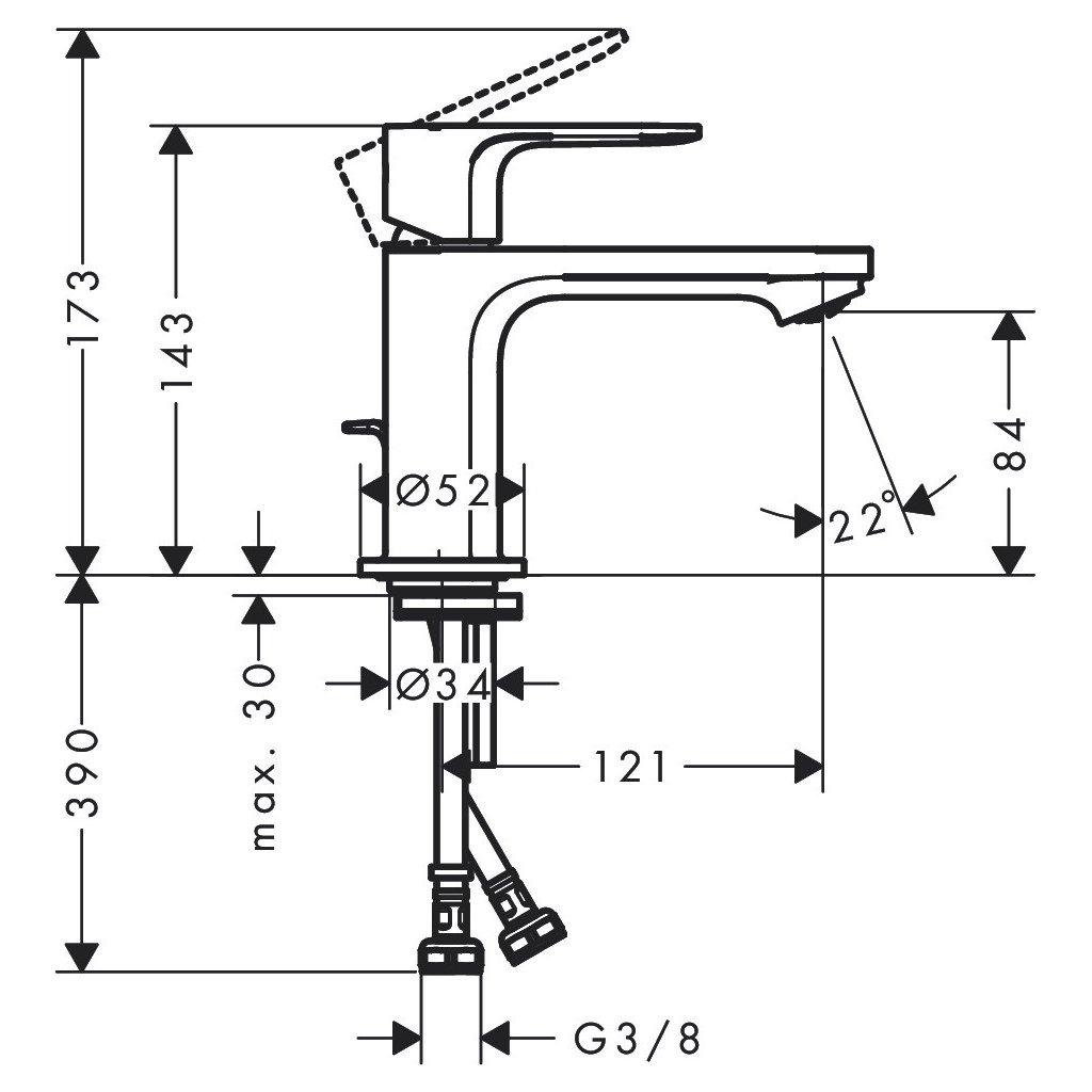 - Include: baterie lavoar cu pârghie, set de scurgere
