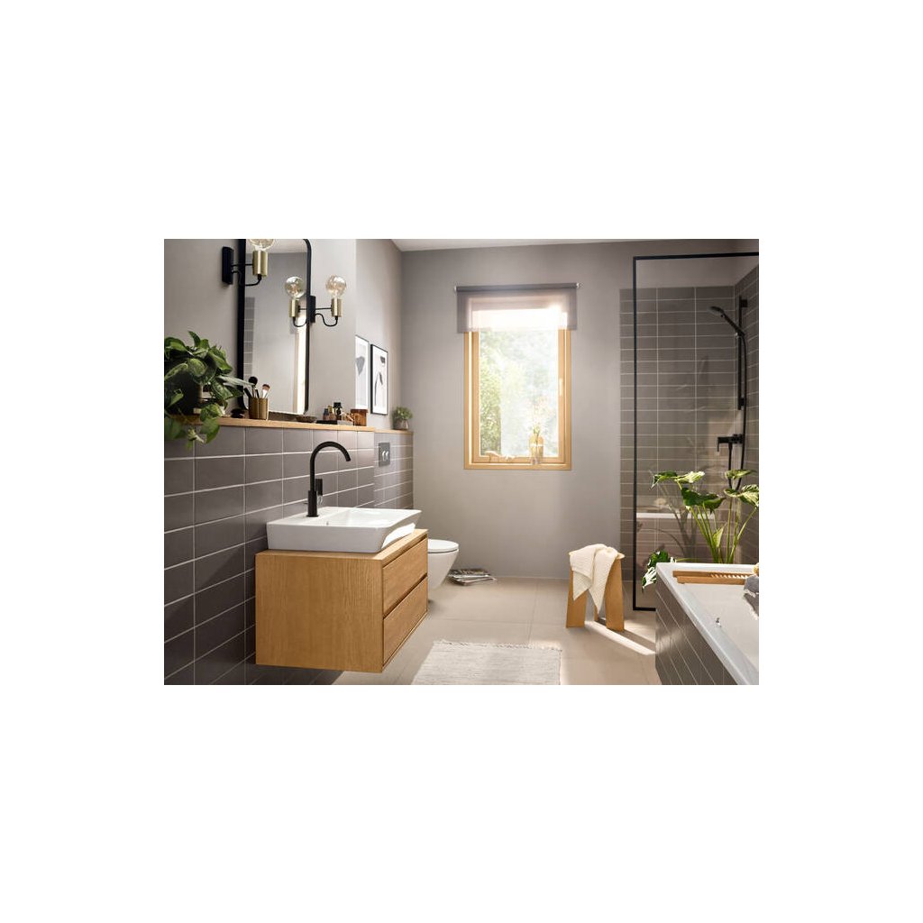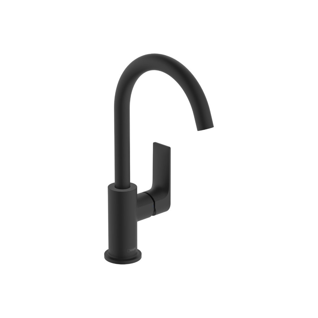 Hansgrohe Rebris E, baterie pentru chiuvetă înaltă 210 cu gura de scurgere pivotantă și set de gunoi extras, negru mat, HAN-72576670