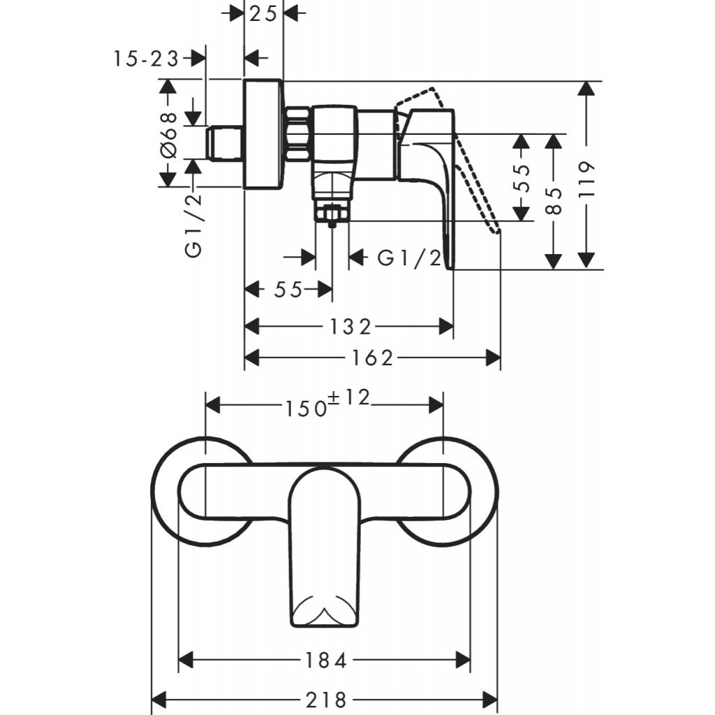 Hansgrohe Rebris E, robinet de duș de perete, crom, 72650000