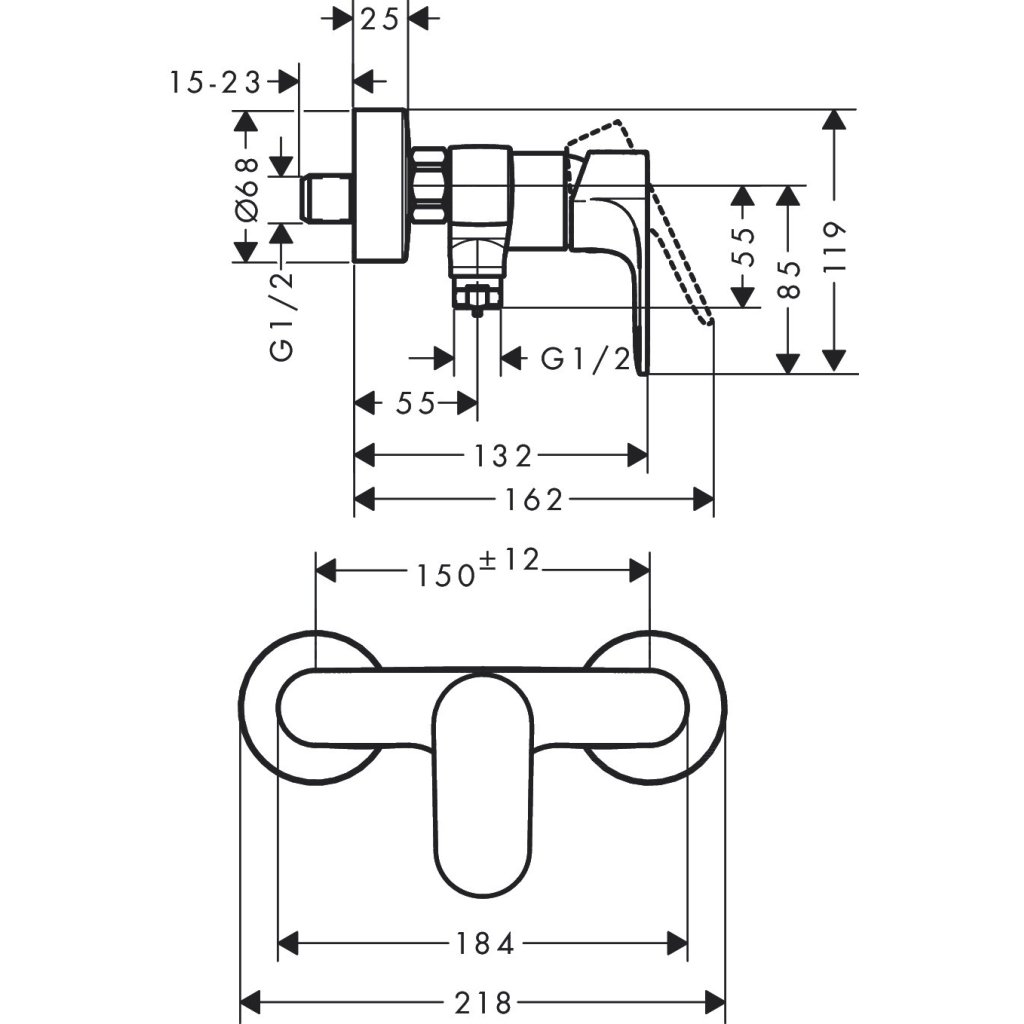 - Distanța dintre centre: 150 mm ± 12 mm