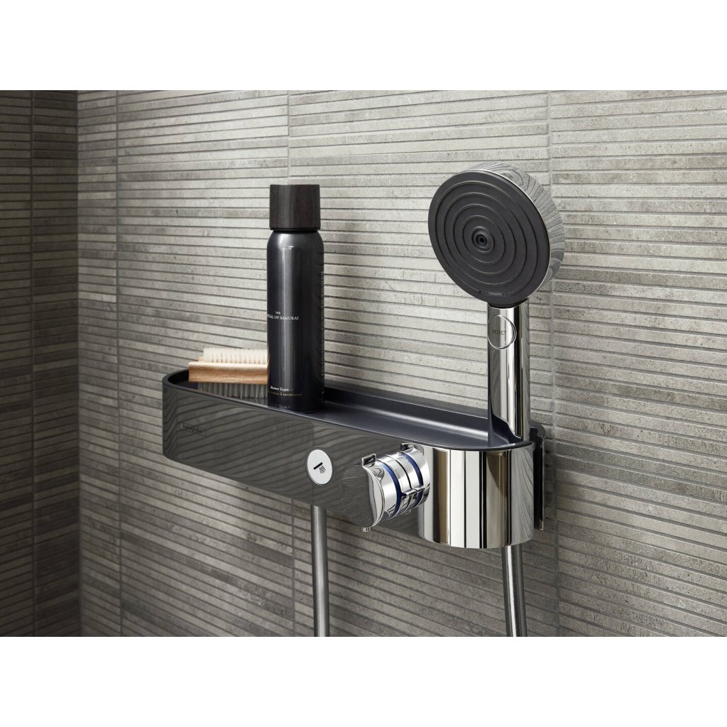 Cu o singură apăsare, puteți schimba tipul de jet sau tipul de duș. Bateriile pot fi operate foarte usor cu butonul Select. Prin apăsarea butonului, apa nu este doar pornită și oprită, dar este și posibilă comutarea între diferite tipuri de duze pentru dușurile de mână sau deasupra capului. Cu termostatul, datorită acestei tehnologii integrate, este posibil să porniți și să opriți curgerea apei cu precizie deplină și să alegeți diferite dușuri. Dacă este necesar, puteți controla bateria fără a folosi mâinile, deoarece butonul poate fi comutat intuitiv cu mâna sau cu cotul. Butonul Hansgrohe Select garantează simplitatea în fiecare zi și este ideal pentru toți cei care apreciază o experiență de duș confortabilă și plăcută.