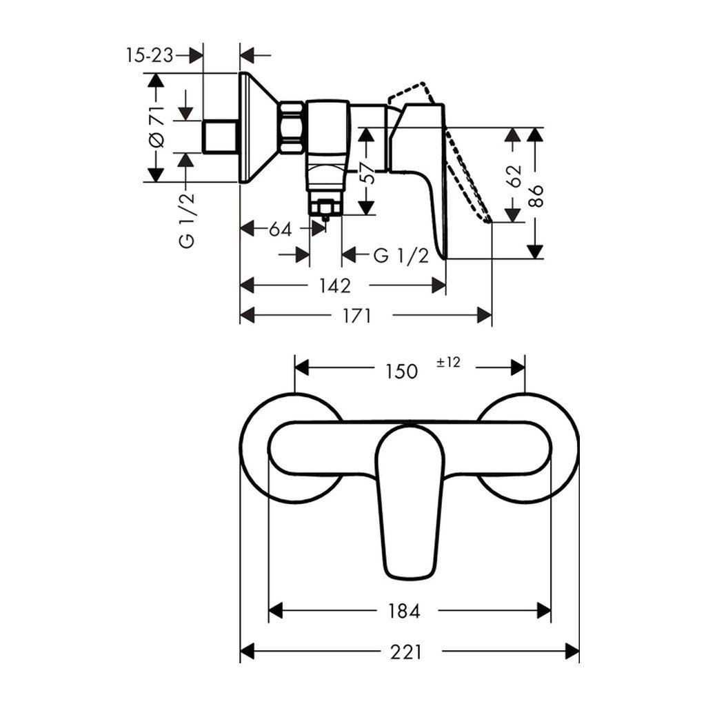- Distanța dintre centre: 150 mm ± 12 mm