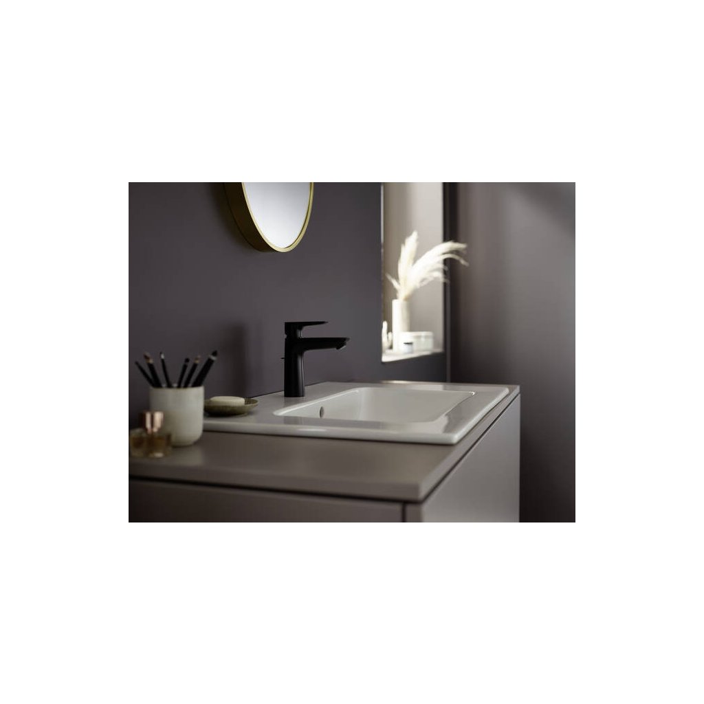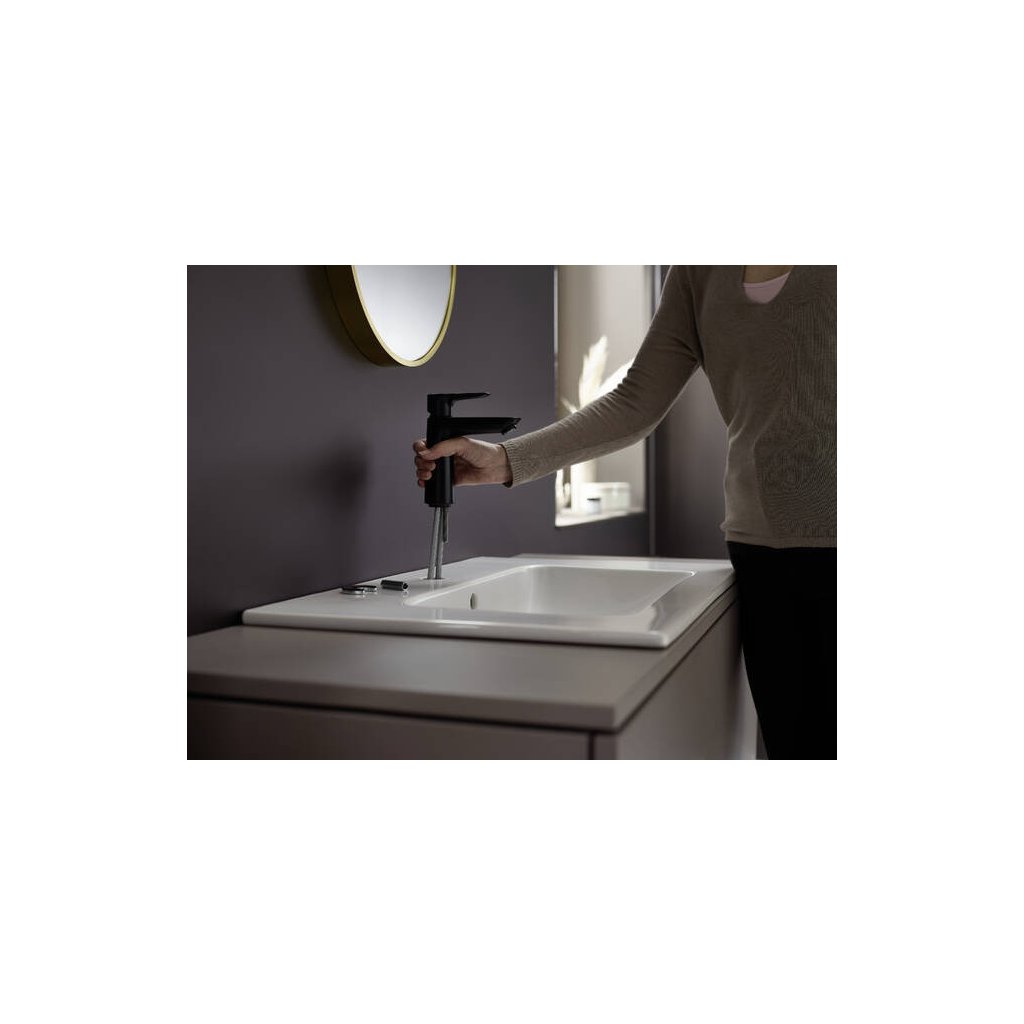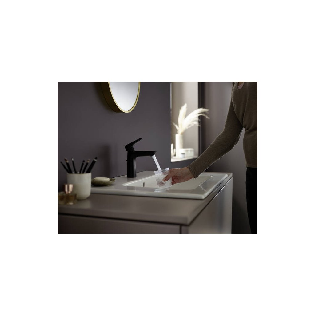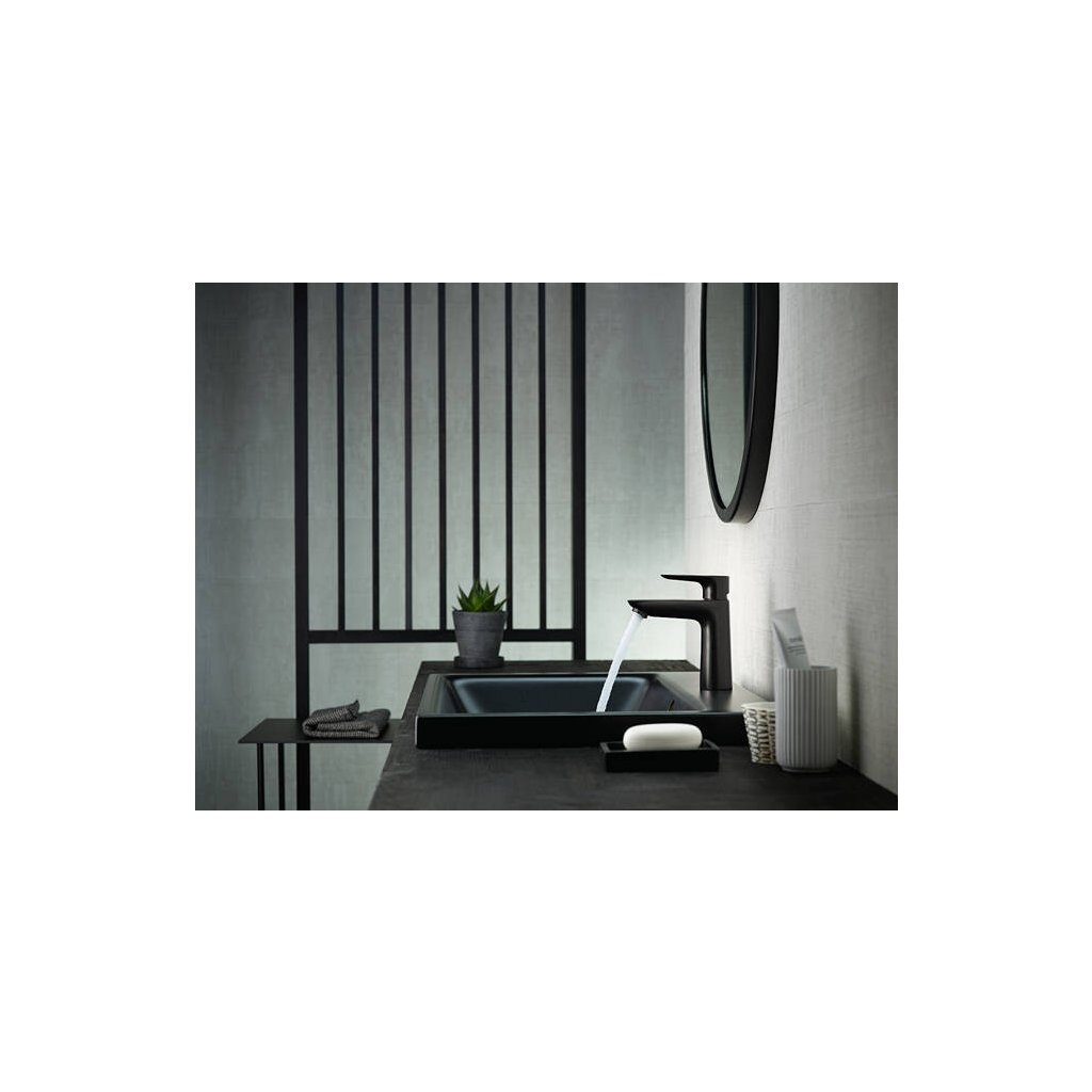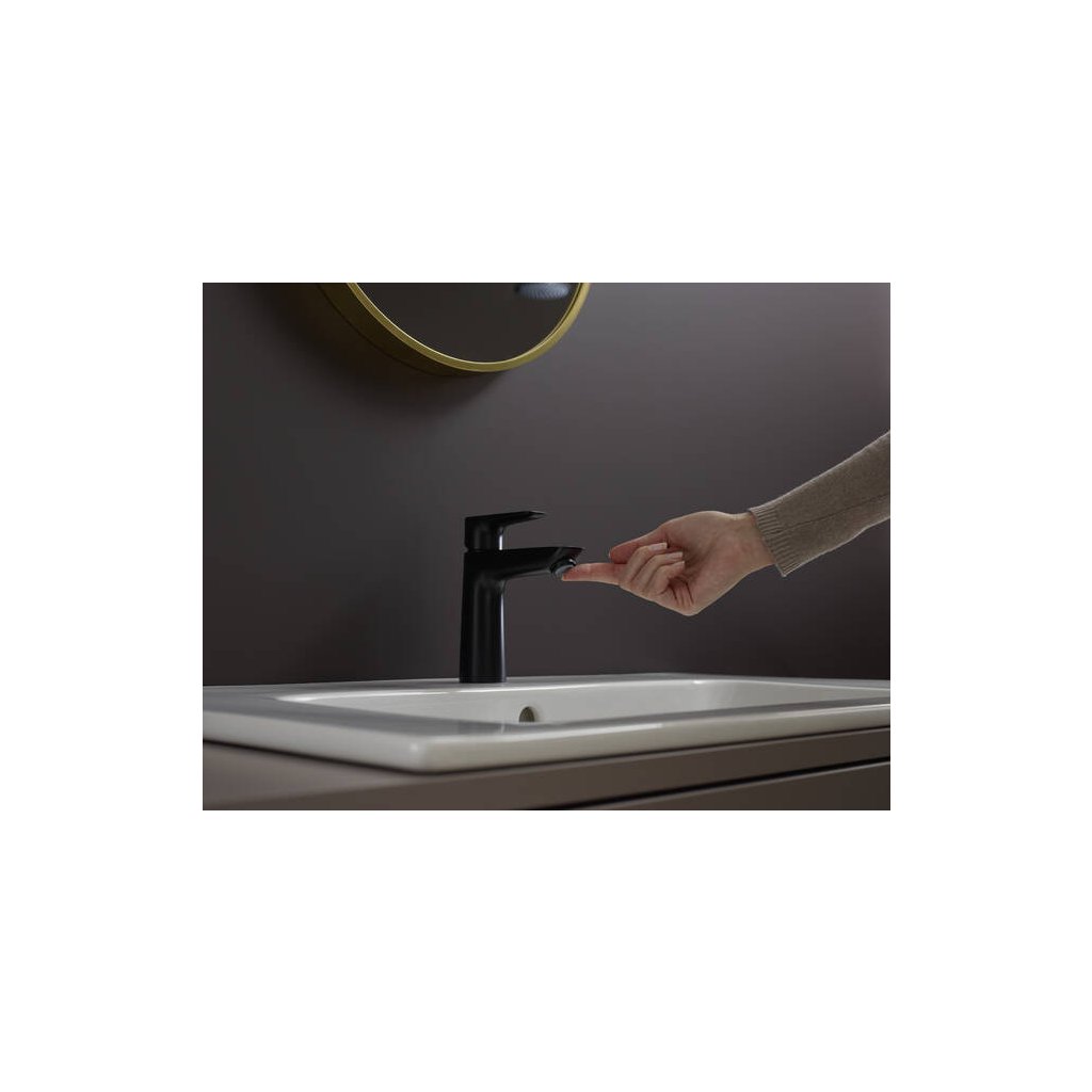 Hansgrohe Talis E, baterie lavoar cu manetă 110 CoolStart cu set de scurgere cu tragere, negru mat, 71713670