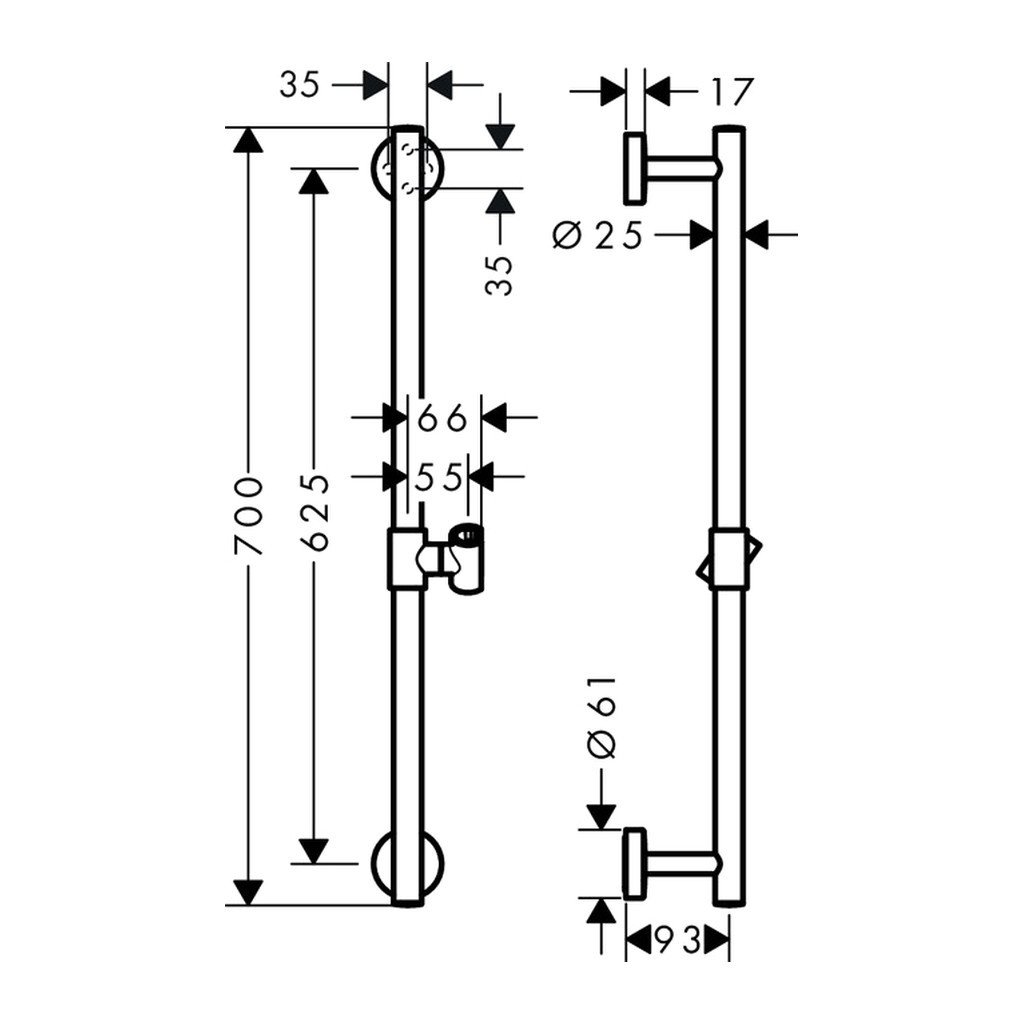 Hansgrohe Unica, tijă de duș confort 650 mm, crom, HAN-26401000