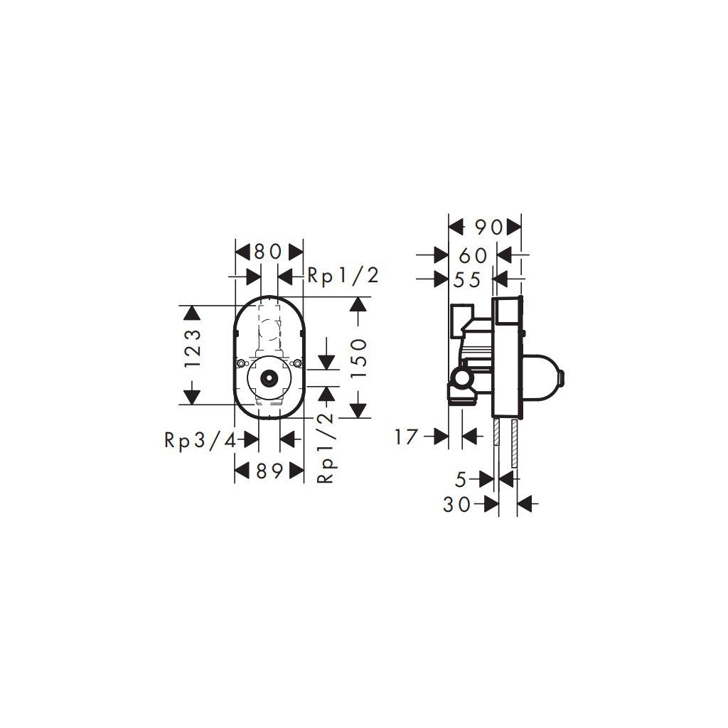 - Corp de bază pentru un robinet de baie cu pârghie sub tencuială (# 31741180)