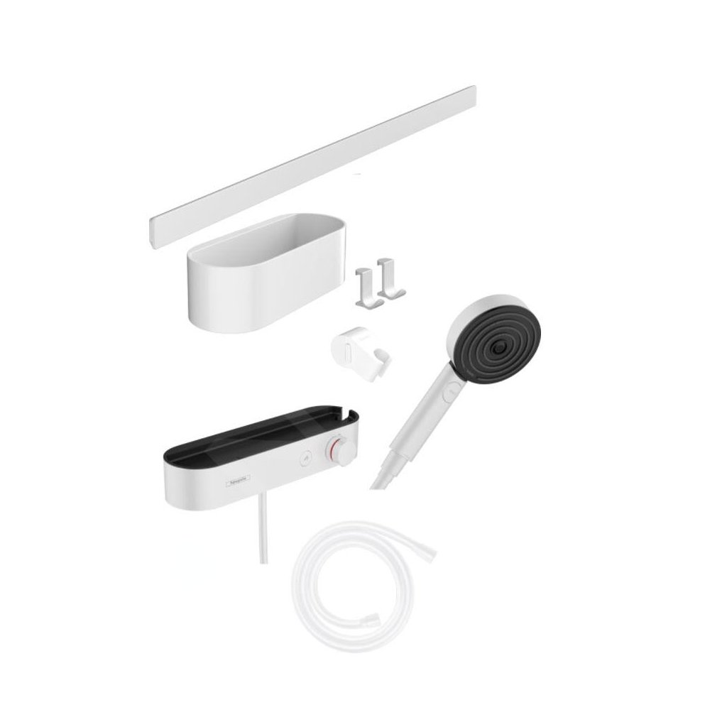 Hansgrohe WallStoris, Set cap de duș 105, 3 jeturi, termostat și accesorii pentru baie, alb mat 24250700