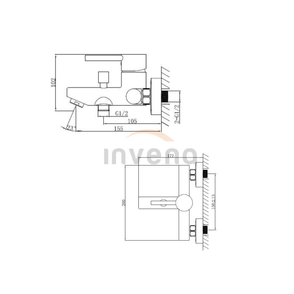 Invena Dokos, baterie pentru cada, alb-crom, INV-BW-19-002-V