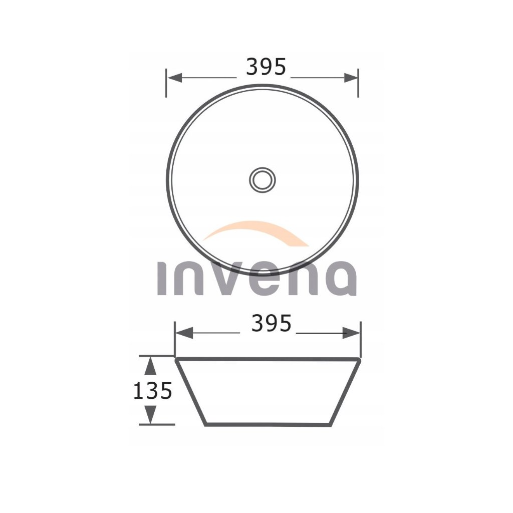Invena Dokos, lavoar ceramic de blat 395x395x135 mm, alb lucios, INV-CE-19-011-C