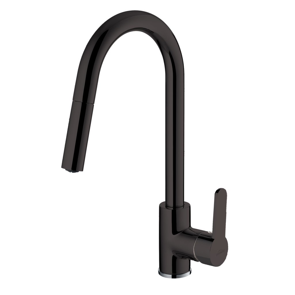 Seria neagră Elia atrage cu siguranță atenția, se caracterizează prin eleganță și va fi, fără îndoială, un decor al bucătăriei. Culoarea estetică neagră oferă un aspect unic de frumos. Negrul contrastează perfect cu plăcile albe și ceramica. Aerator încorporat care economisește apă, datorită tehnologiei de aerare a apei economisești până la 50% din apă în comparație cu bateriile standard.