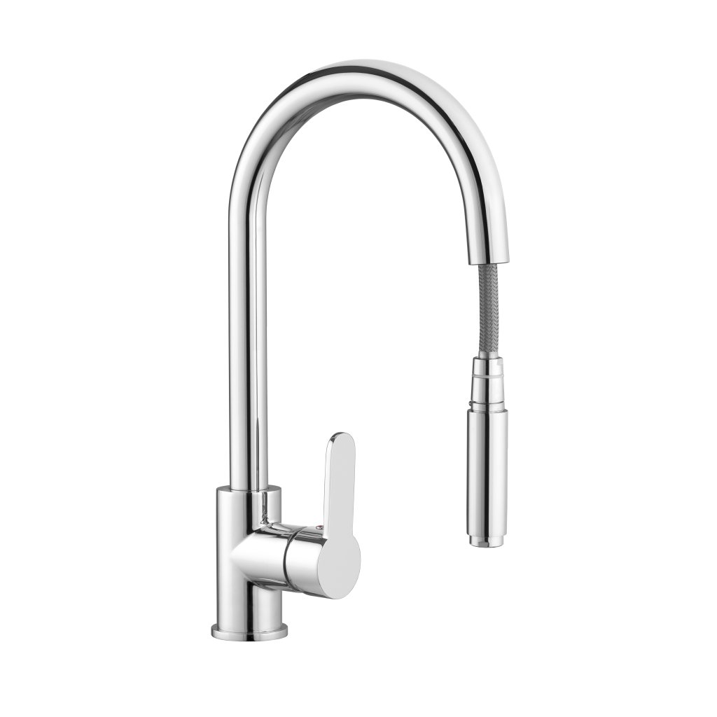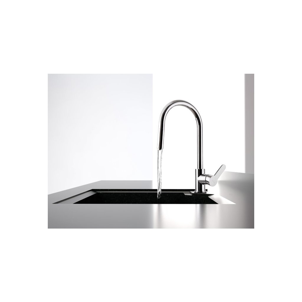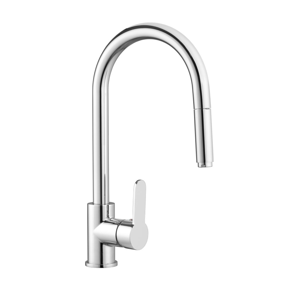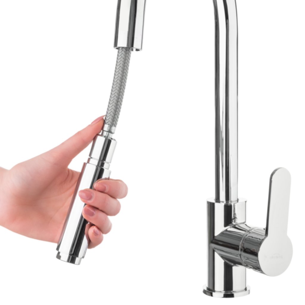 Bateriea de bucatarie Elia este un model modern cu gura cu doua functii. Este echipat cu un aerator care economisește apă și un mixer ceramic durabil și garantează funcționalitate deplină și confort în utilizare. Disponibil în două culori: crom și negru.