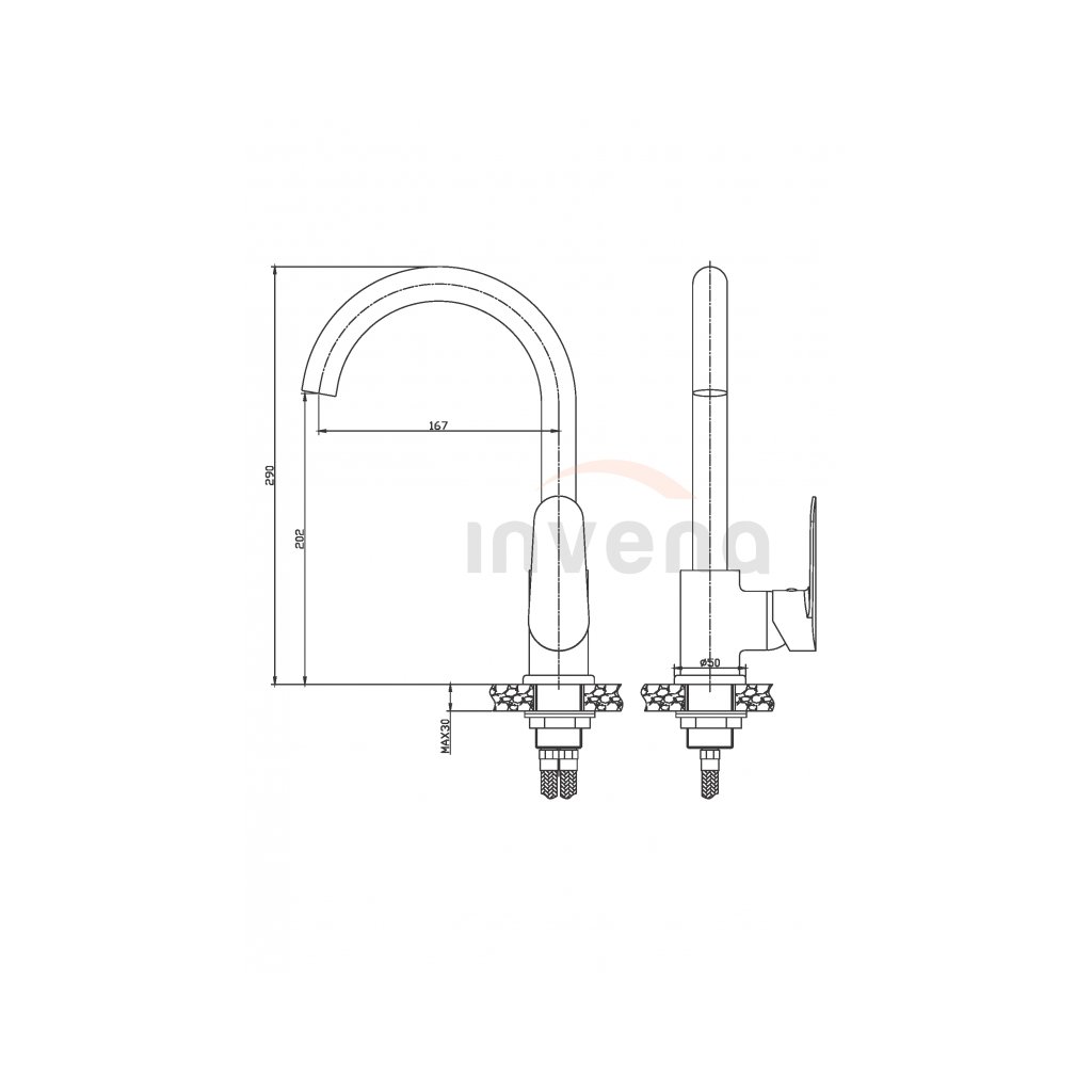 Invena Esla, baterie pentru chiuvetă de sine stătătoare cu gura de scurgere în formă de U, crom, INV-BZ-94-001-V
