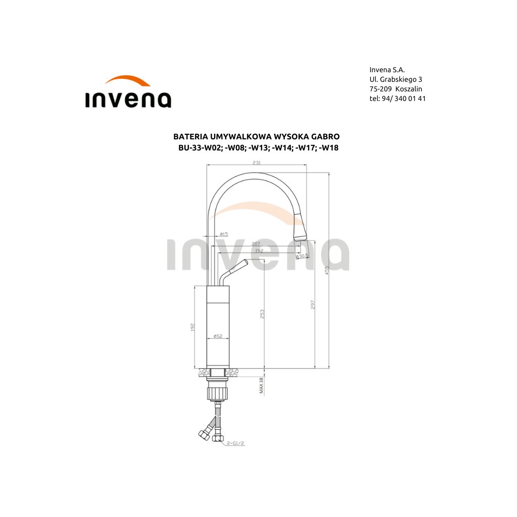 Invena Gabro, baterie chiuveta inalta, alb-crom, INV-BU-33-W02-V