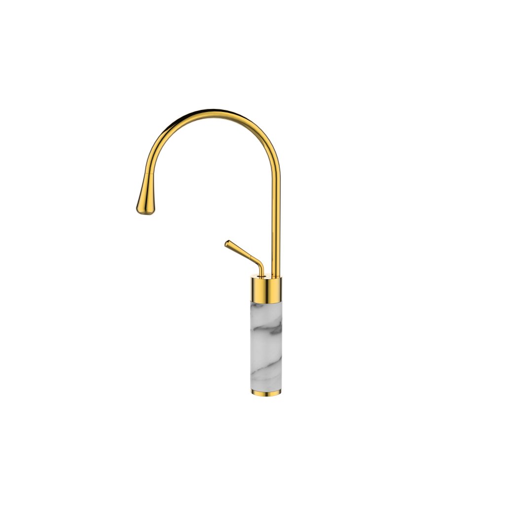 Invena Gabro, baterie pentru lavoar înalt, alb-auriu, INV-BU-33-W13-V