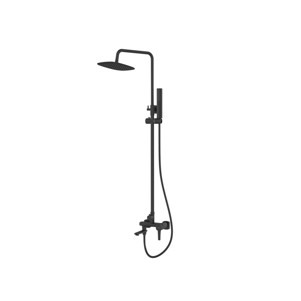 Invena Glamour Trend, set cadă-duș cu cap de duș cu efect de ploaie 22x22 cm, negru mat, INV-AU-05-B04-V