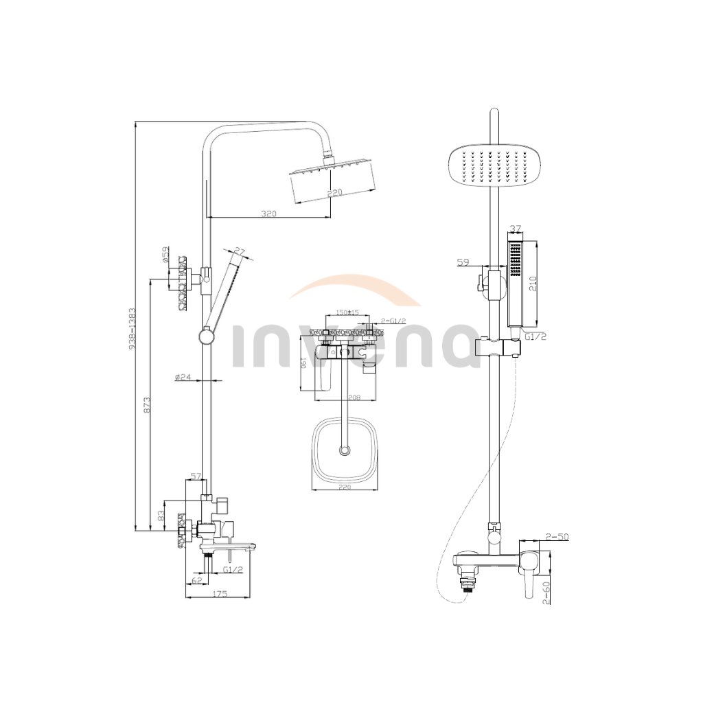 - Coloana de dus reglabila in inaltime: de la 94 la 138 cm