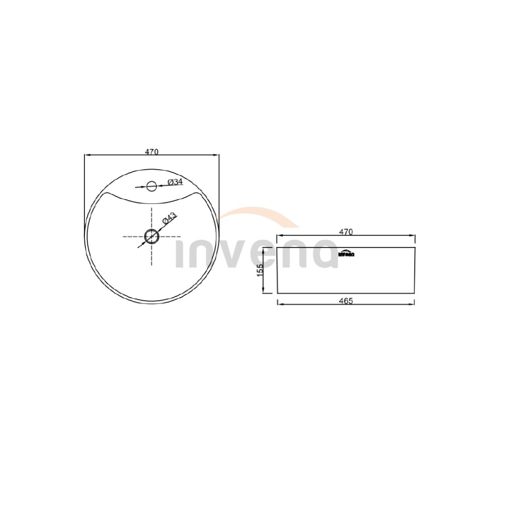 Invena Granada, chiuveta rotunda pe blat 470x470x155 mm, alb, INV-CE-45-001-W