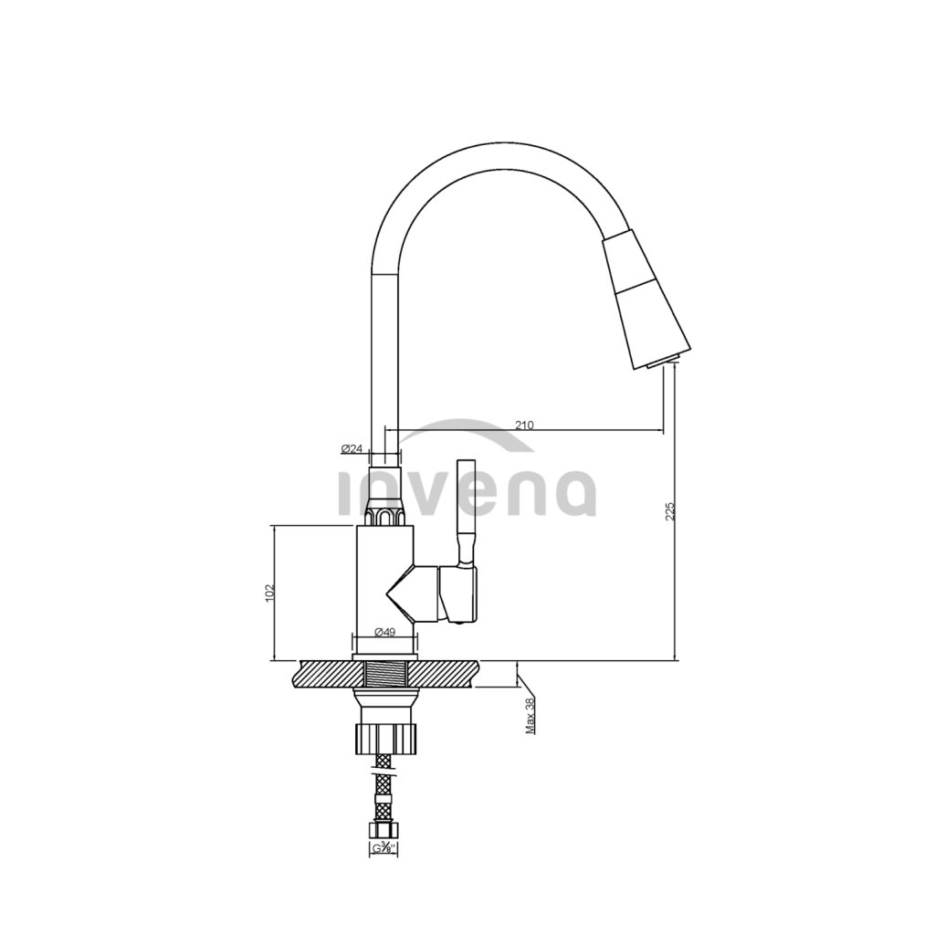 Invena Hula, baterie chiuveta inalta 2 functii, negru, INV-BZ-85-P04-L