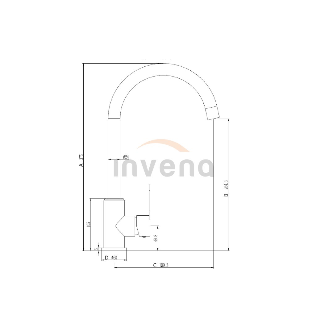 Invena Iron, robinet pentru chiuveta de sine statator, otel, INV-BZ-53-L23-L