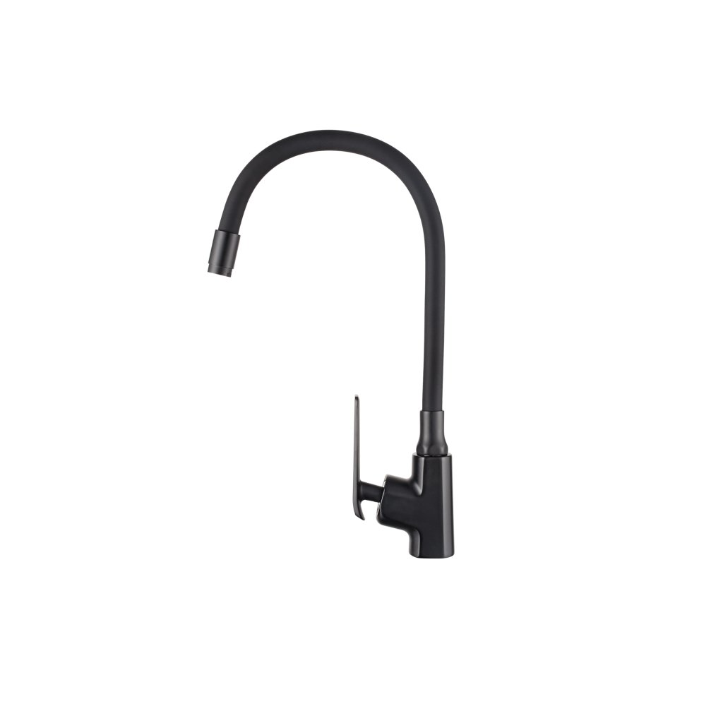 Invena Ligaria, baterie de bucătărie înaltă cu braț elastic, sistem Eco Start, negru mat, INV-BZ-39-004-L
