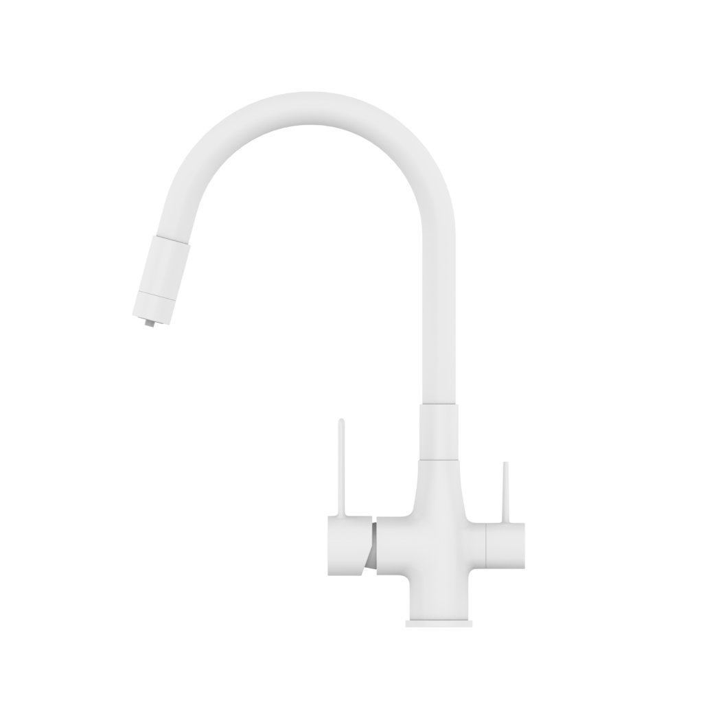 Invena Magic, baterie de lavoar independentă cu braț flexibil și filtru de apă potabilă, alb mat, INV-BZ-02-F02-V