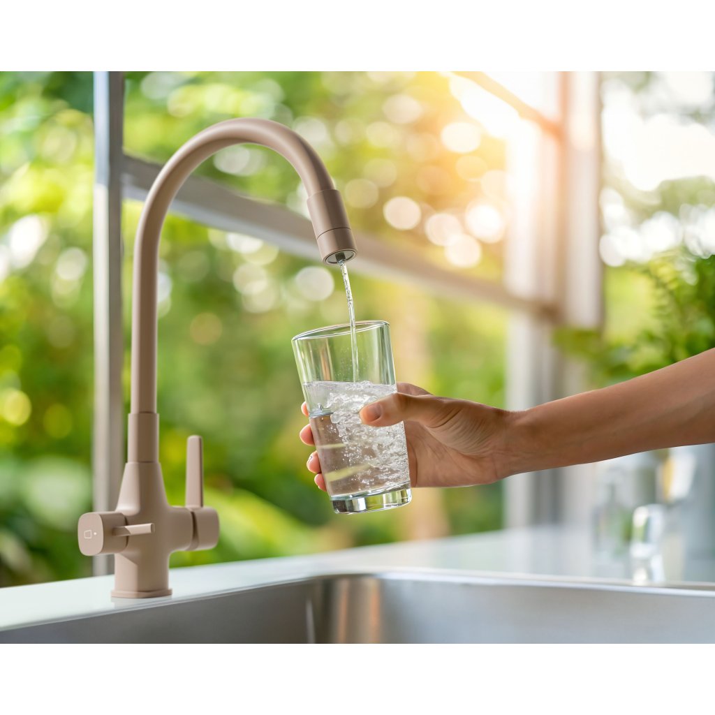 Invena Magic, baterie de lavoar independentă cu braț flexibil și filtru de apă potabilă, bej mat, INV-BZ-02-F03-V