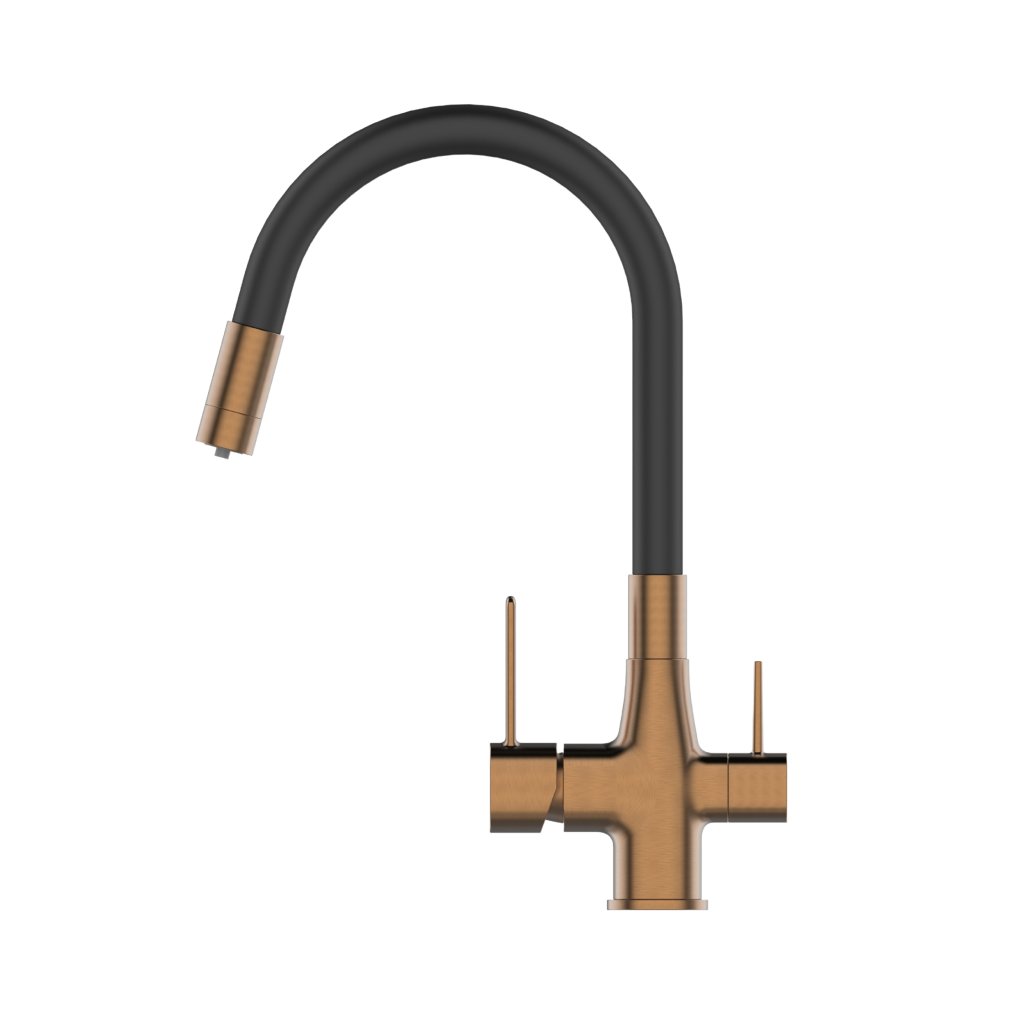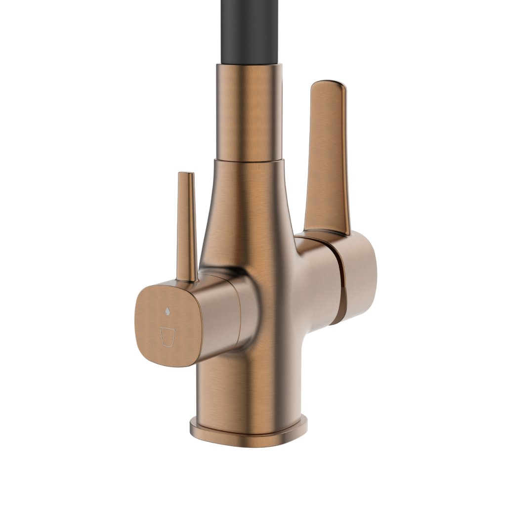 Invena Magic, baterie de lavoar independentă cu braț flexibil și filtru de apă potabilă, negru-cupru mat, INV-BZ-02-F15-V
