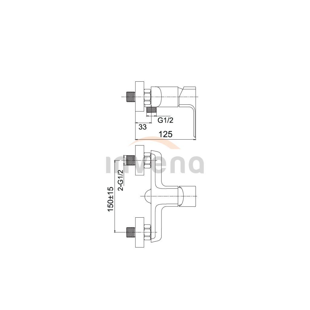 Invena Nyks, baterie de baie montata pe perete fara set de dus, crom lucios, INV-BW-28-001-S