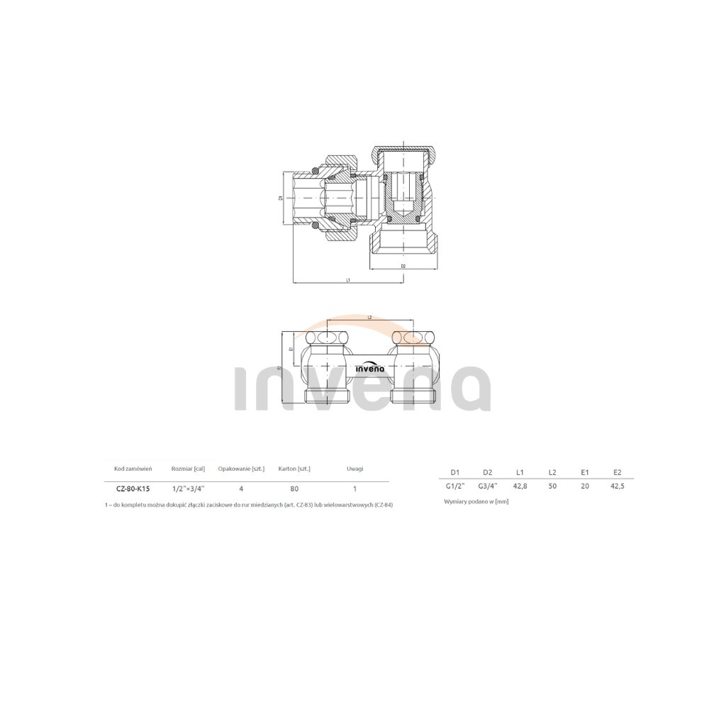 Invena Prov, supapă unghiulară pentru radiator 1/2x1/2", INV-CZ-80-K15-L