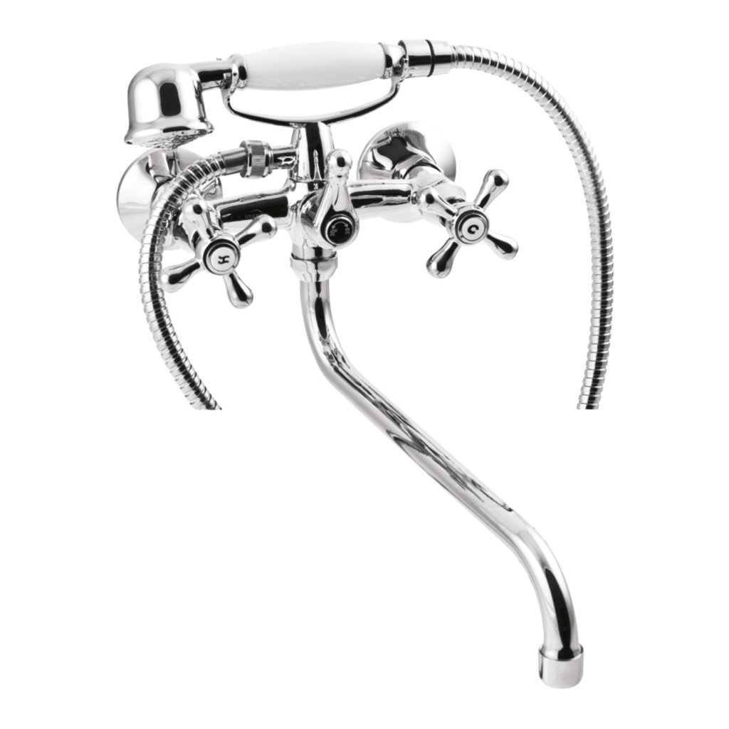 Invena Roma, baterie cadă cu duș prelungit 300 mm și set de duș manual, crom, INV-BW-24-00S-L