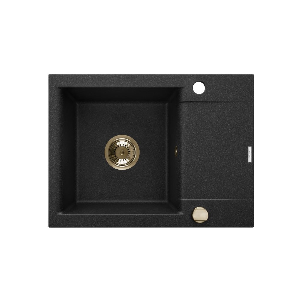 Invena Tesalia, chiuveta granit 1 camera cu scurgere 590x440x160 mm si sifon automat auriu, INV-AZ-01-Z42-B