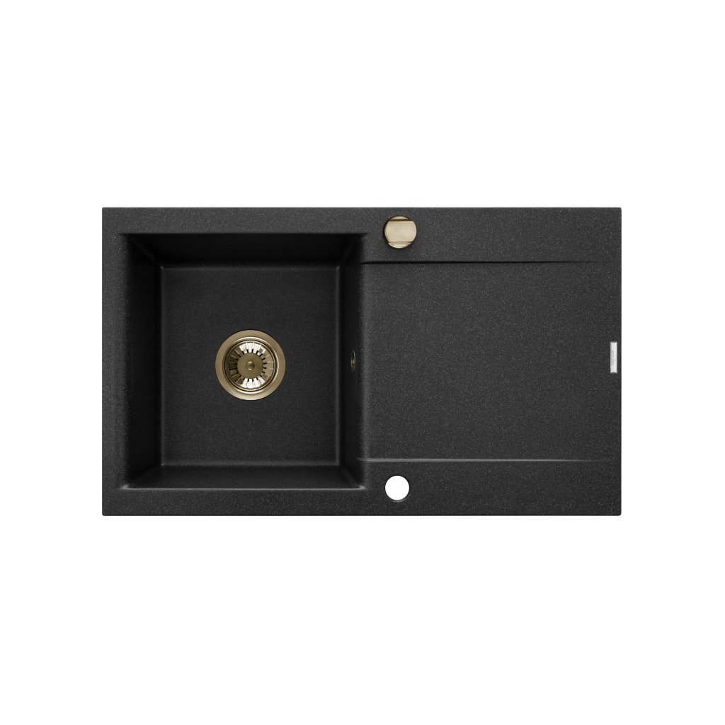 Invena Tesalia, chiuveta granit 1 camera cu scurgere 760x440x160 mm + sifon automat auriu, INV-AZ-01-Z43-B