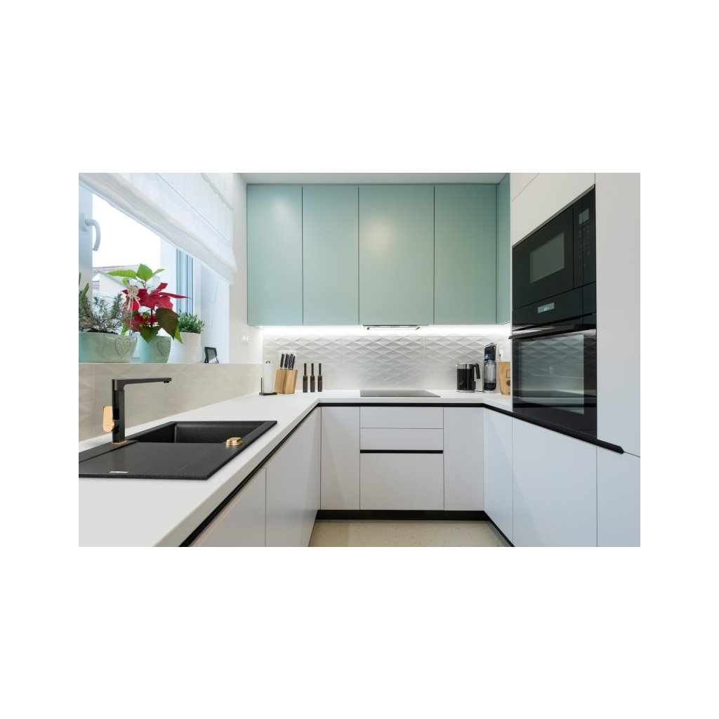 Chiuveta din granit Tesalia este o combinație de funcționalitate și minimalism. Datorită proprietăților sale hidrofobe, chiuveta este ușor de păstrat curat. Datorita componentelor de cea mai inalta calitate, chiuveta de bucatarie are o rezistenta ridicata la impacturi, obiecte ascutite, socuri termice sau actiunea lichidelor de colorare.
