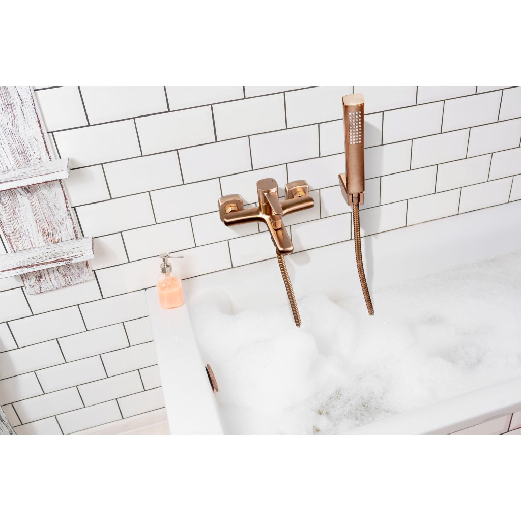 Invena Trend, baterie pentru cadă cu set de duș manual punct, cupru mat, INV-BW-02-014-V
