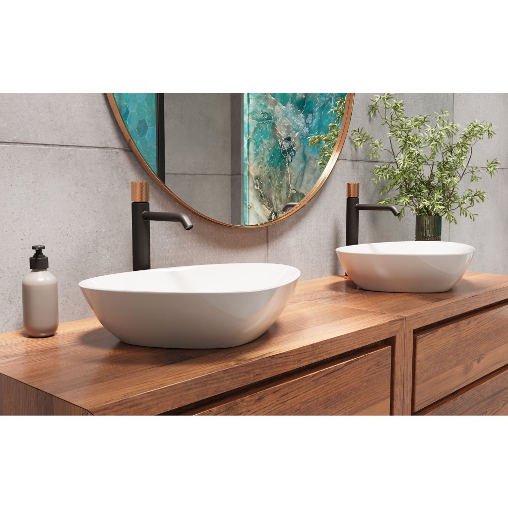 - Chiuveta este realizată din ceramică de înaltă calitate și este perfect potrivită pentru robinetele de chiuvetă înalte sau robinetele ascunse.