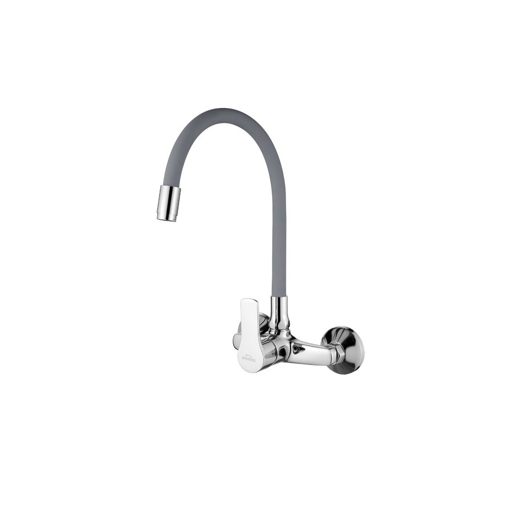 Invena Verso, baterie de bucătărie montată pe perete 150 mm cu braț elastic, gri-crom, INV-BC-82-E5S-L