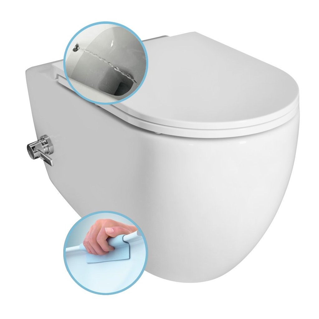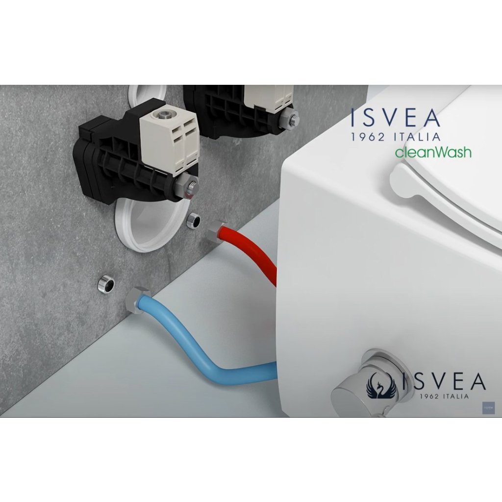 Isvea, vas WC suspendat INFINITY CLEANWASH Rimless, robinet integrat si spray bideu 36,5x53cm, alb, 10NFS1005I