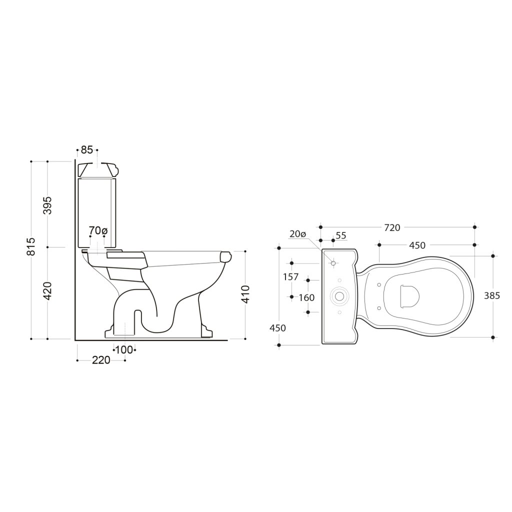 Kerasan, vas combinat RETRO WC 38,5x41x72cm, deșeuri inferioare, 101201