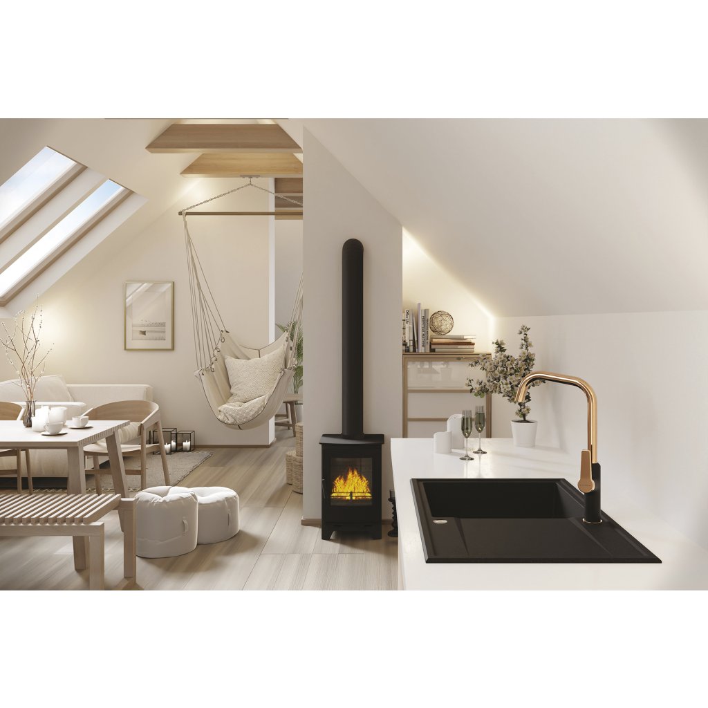 Kuchinox Alanis, baterie de chiuvetă înaltă cu gura de scurgere în formă de L, h-379, aur roz-negru, LAV-BQI_865D
