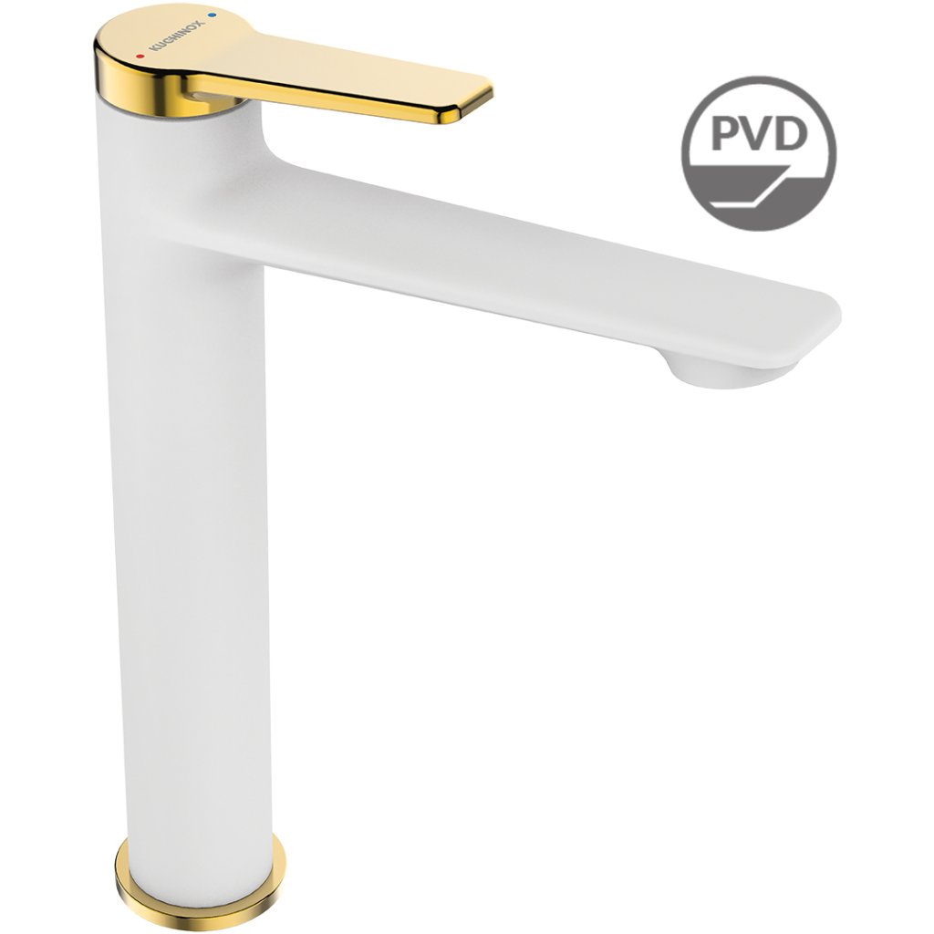 Kuchinox Alanis, baterie pentru chiuvetă înaltă cu dop de scurgere ClickClack h-268, alb-auriu lucios, LAV-BQI_62NG