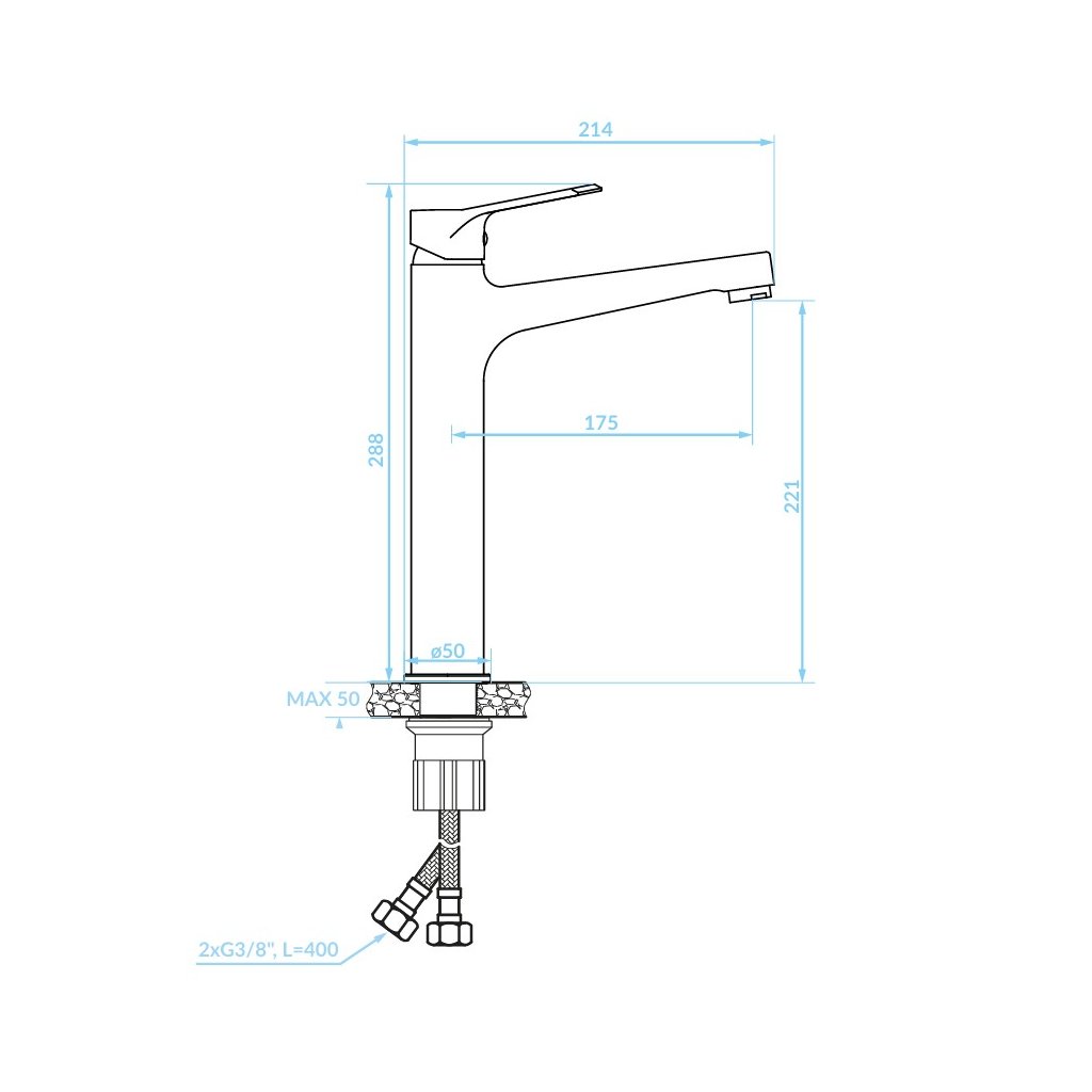 Datorită sistemului robust de montare, bateria Atez poate fi montată direct pe blatul de baie sau în orificiul chiuvetei. Instalarea este rapidă, intuitivă și nu necesită unelte speciale.
