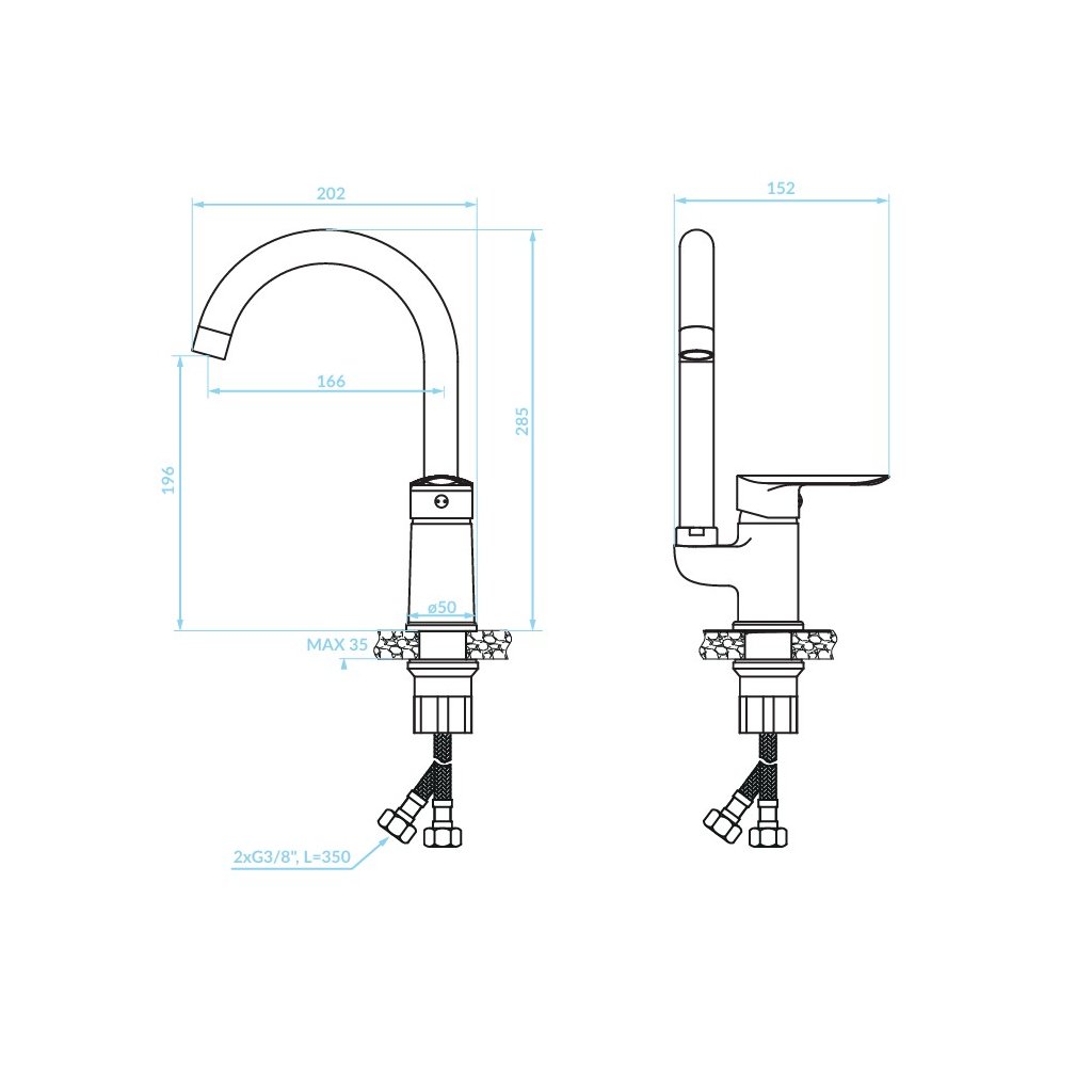 - Lungimea furtunurilor de conectare: 40 cm, 3/8" incluse în pachet