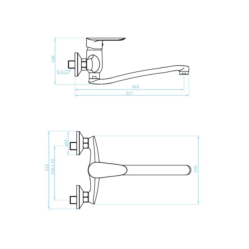 Kuchinox Cento, baterie chiuvetă de perete L-303, cromată, LAV-BKC_080D
