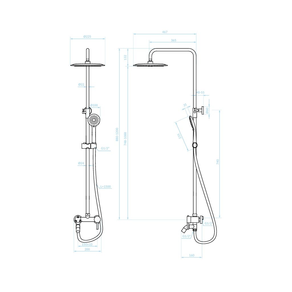 - Dimensiunea capului de duș tip ploaie: Ø 225 mm
