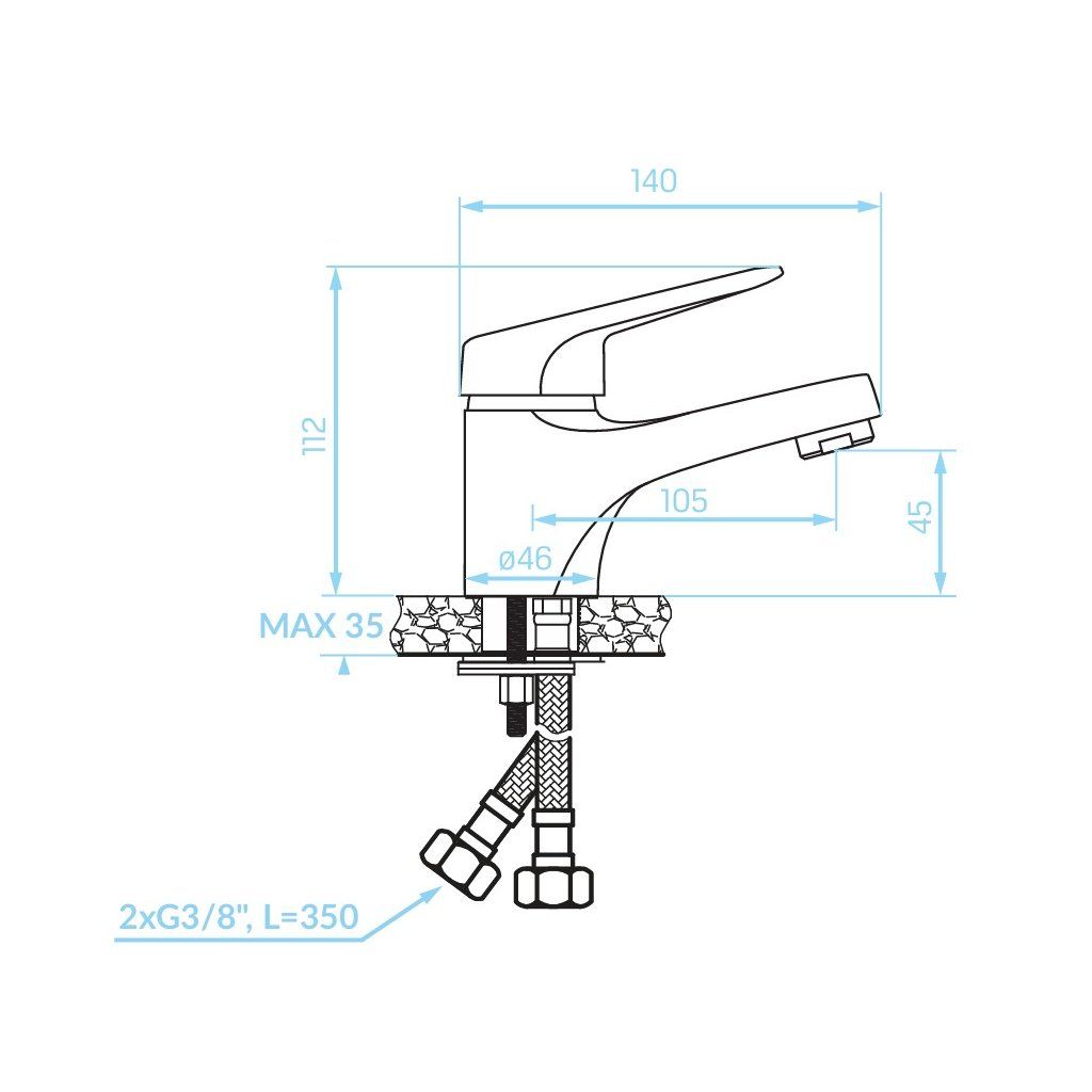 Instalarea ușoară și furtunurile de conectare lungi de 35 cm permit o instalare flexibilă. Funcționarea silențioasă și debitul economic fac din acest robinet o alegere ecologică pentru baia modernă.