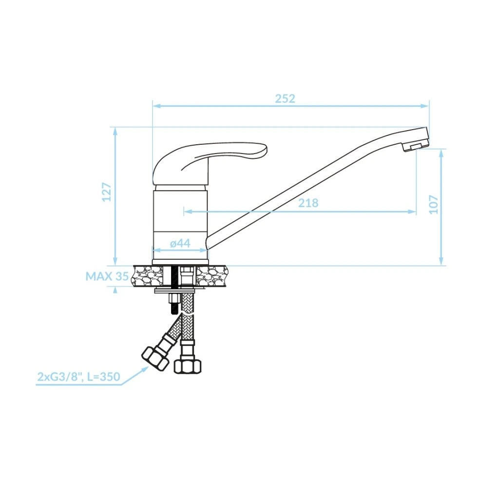 Bateria de lavoar Pedro este soluția ideală pentru băi mai mici și toalete pentru oaspeți. Cu o înălțime totală de doar 127 mm, oferă dimensiuni compacte fără a compromite calitatea și funcționalitatea.