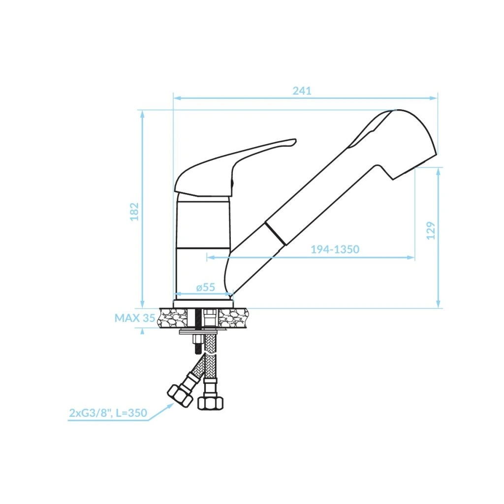 ✅ Înălțime compactă de 182 mm, potrivită pentru majoritatea chiuvetelor de bucătărie