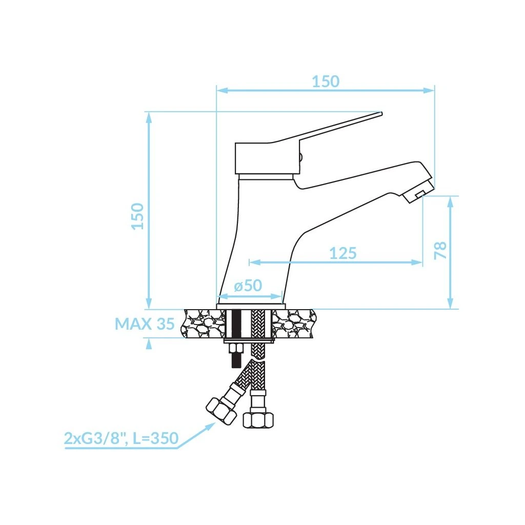- Tip baterie: Baterie lavoar cu monocomandă
