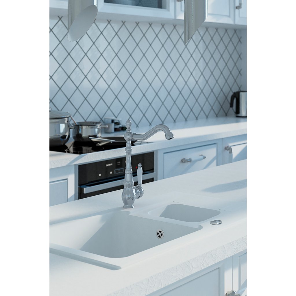 Laveo Evora, baterie pentru chiuveta inalta h-304, alb-crom, LAV-BAE_065D