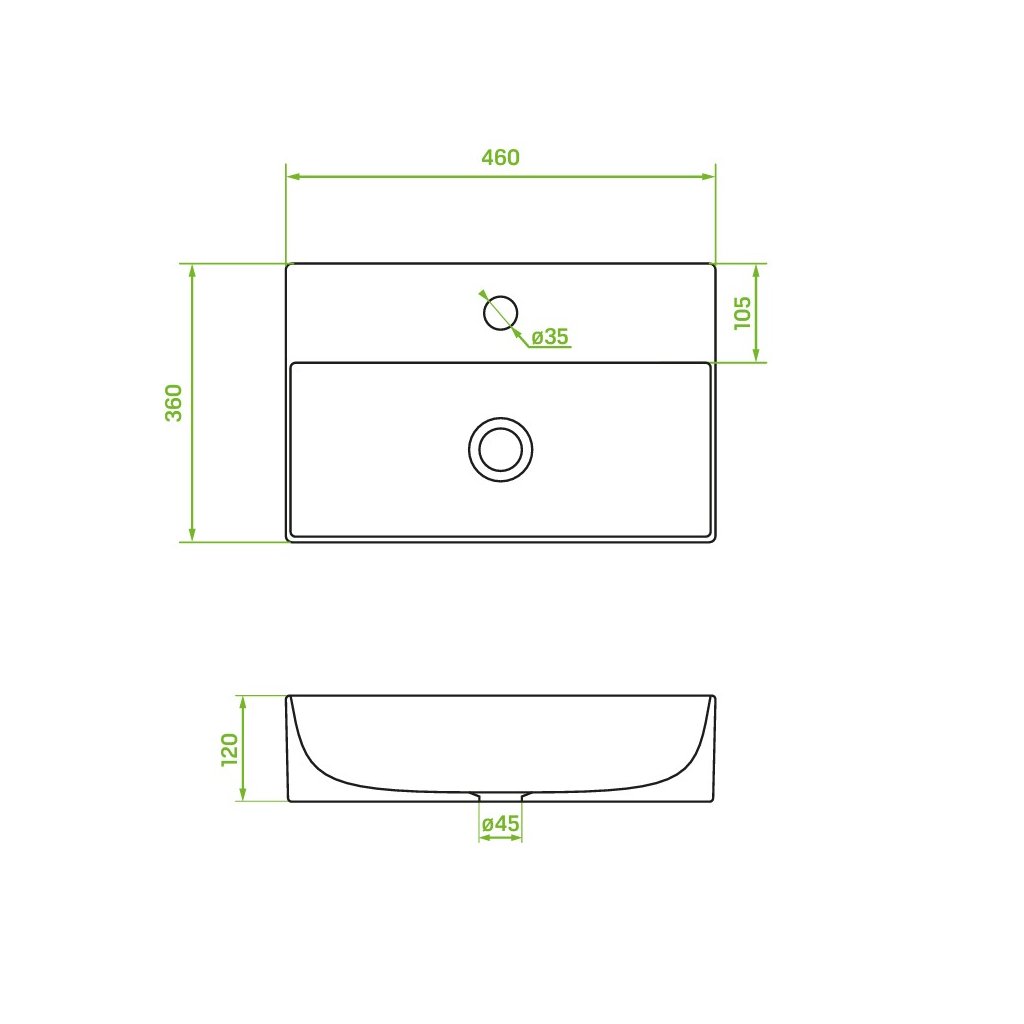Laveo Kvadrato, lavoar ceramic de blat sau montat pe perete 460×360×120 mm, alb lucios, LAV-VUK_6146